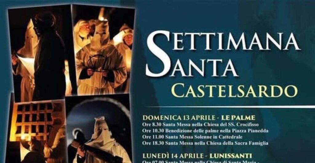 Il cuore dei riti si articola in tre momenti principali: il Lunissanti, il Lunedì successivo alla Domenica delle Palme, la Prucissioni del Giovedì Santo e l’Ilcravamentu del Venerdì Santo. Tra questi, la Processione dei Misteri del Lunissanti rappresenta il momento più affascinante: all’alba, nella chiesa di Santa Maria, i membri della Confraternita si dividono i ruoli tra Apostuli, incaricati di trasportare i simbolici “Misteri”, e Cantori, i cui cori – Miserere, Stabat Mater e Jesu – accompagnano il corteo. Dopo il pellegrinaggio alla Basilica di Nostra Signora di Tergu e un pranzo conviviale, la processione fa ritorno a Castelsardo, dove in serata si svolge la Notti Santa, suggestiva processione notturna tra le vie del borgo.